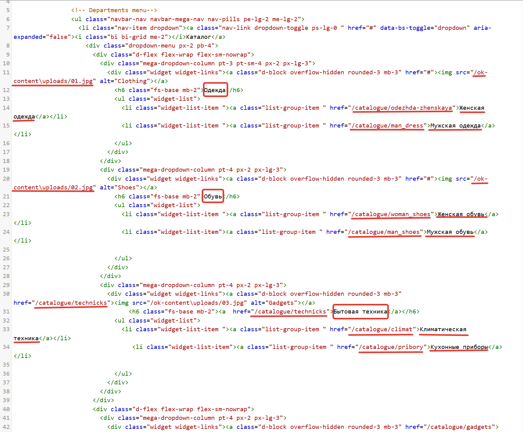 В верстке вы увидите ссылки и изображения. Можете просто их изменить или добавить. Можно полностью сверстать собственный вид вашего мегаменю. Если понадобится помощь, смело обращайтесь к вашему менеджеру.