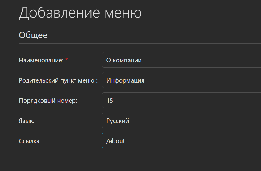 Если создаете подраздел, то укажите родительский пункт меню.